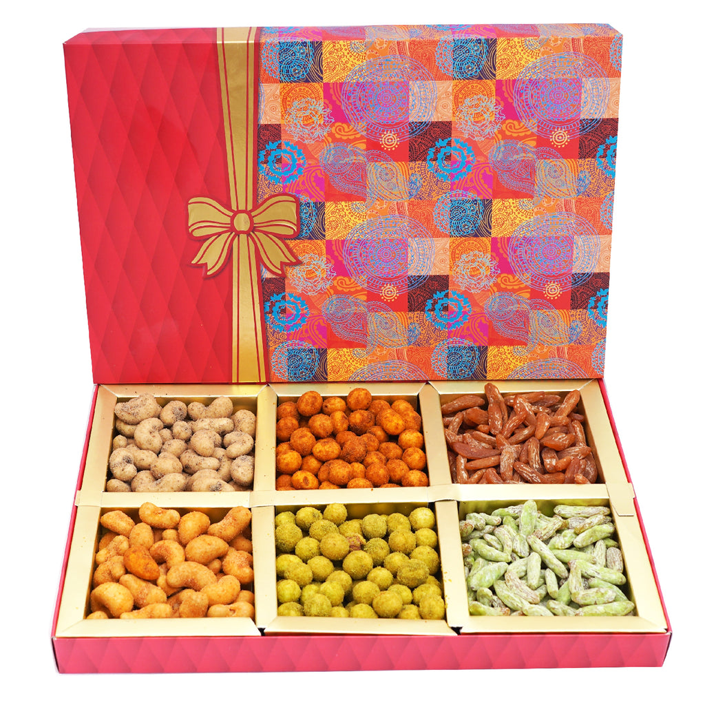 Fruit n Nut 6 Part Box of Crunchy Cashews, Crunchy Peanuts and  Flavoured Almonds 300 gms