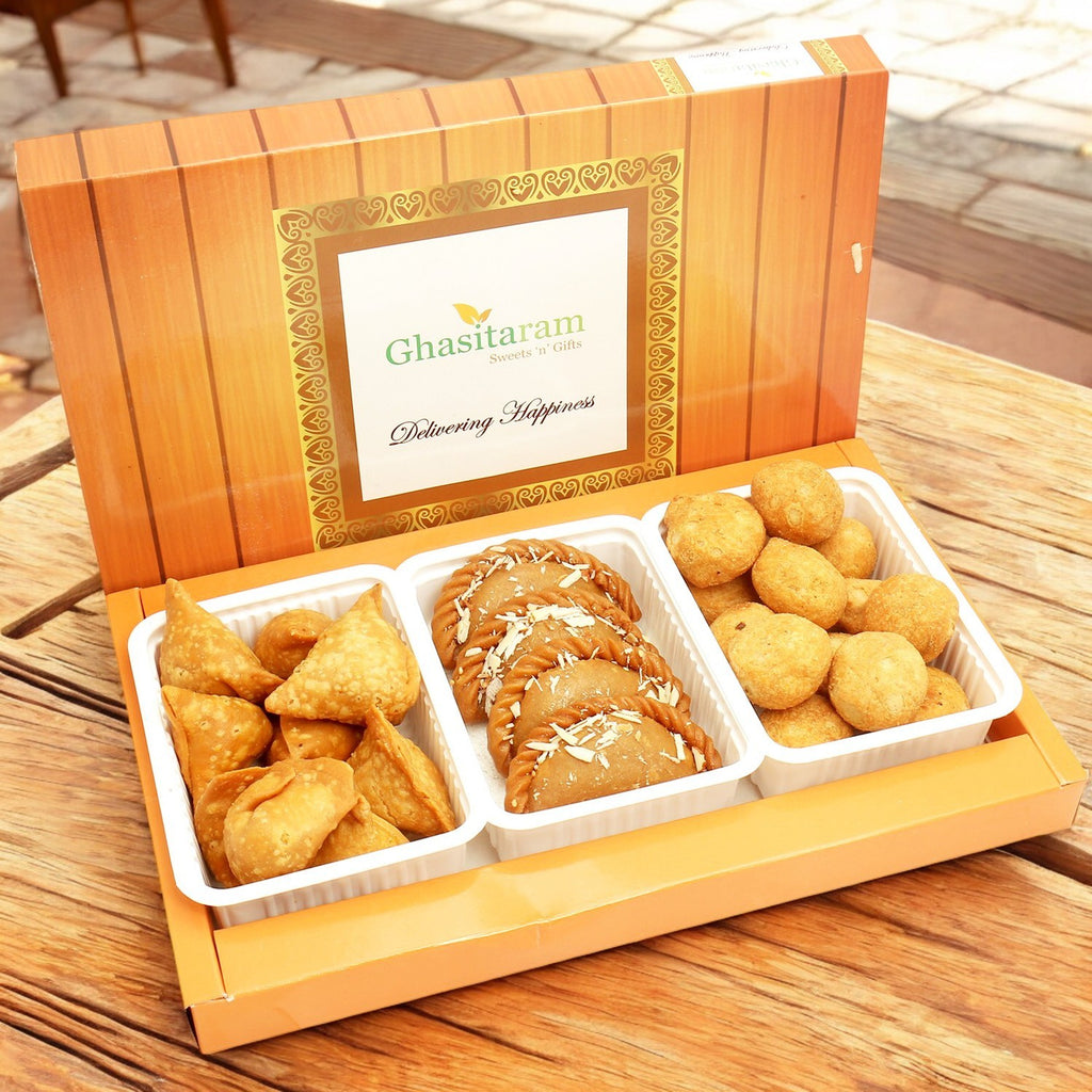Holi Sweets| Holi Hampers| Holi Gifts:Gujiya, Farsan Samosa and Farsan Kachori  Hamper