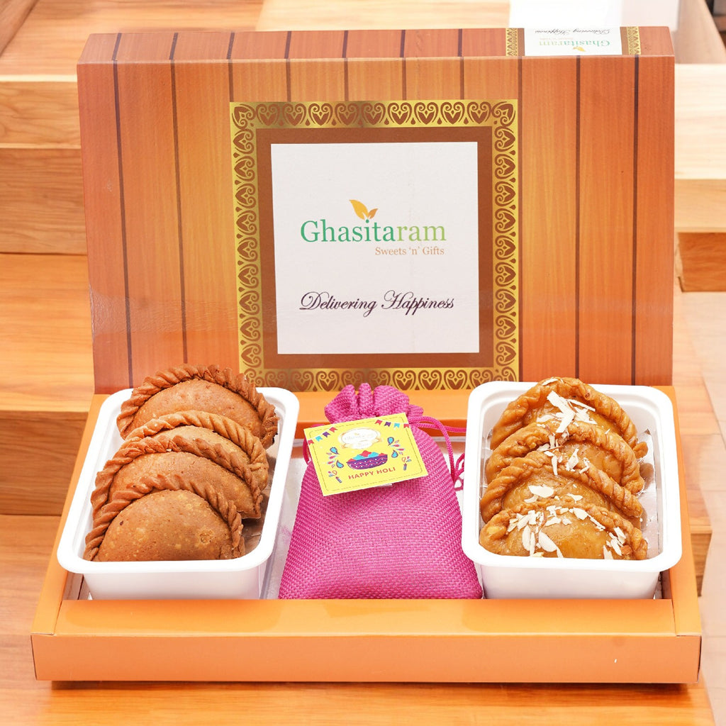 Assorted Box of Gujiyas, Dry Sweet Gujiyas and Thandai