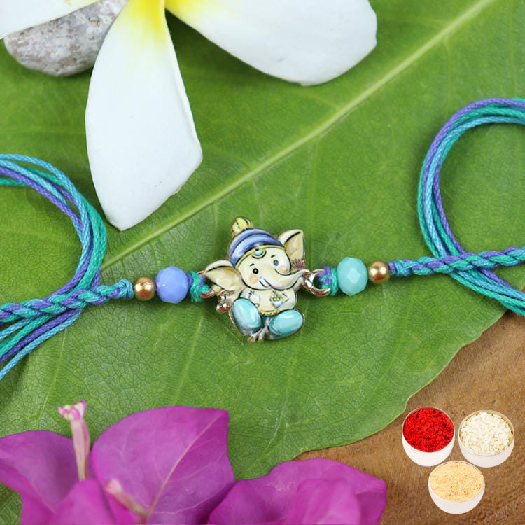 Printed Stone Ganpati Divine Rakhi .Free Roli, Chawal and chandan pouches go along with this product.