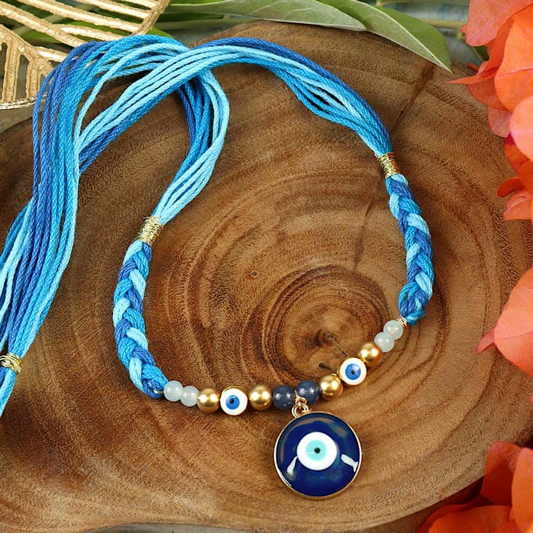Evil Eye With Thread Weave Design Premium Rakhi . .Free Roli, Chawal and chandan pouches go along with this product.